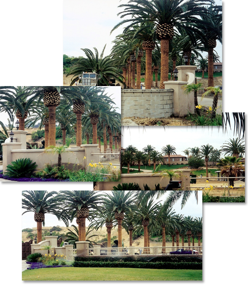 During the job, we brought in palms averaging 24 ft. and installed them 30 ft. apart creating a dramatic canopy for the drive and around the home.
